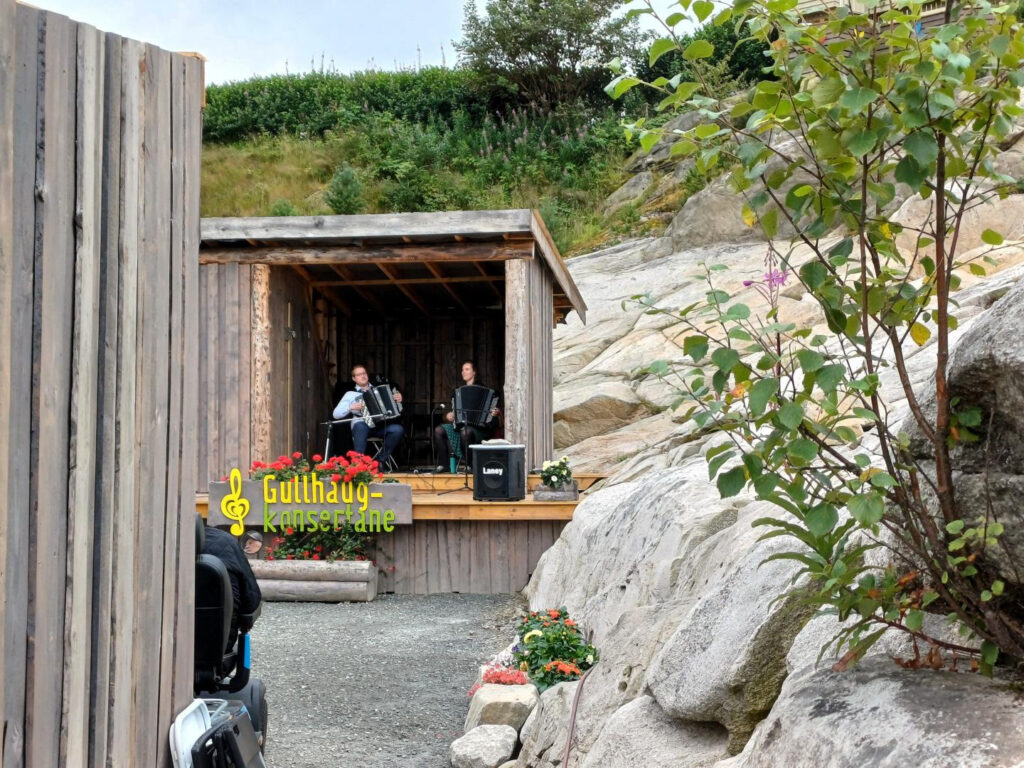 Ásta Soffía and Daniel Falcón Græsdal played a concert with folk music and accordion music at the beautiful outdoor concert stage in Gullhaug. This concert arena is located at Halsnøy, Sunnhordland in west Norway. They received a good feedback from the audience, you can click here to read what they had to say about the concert.